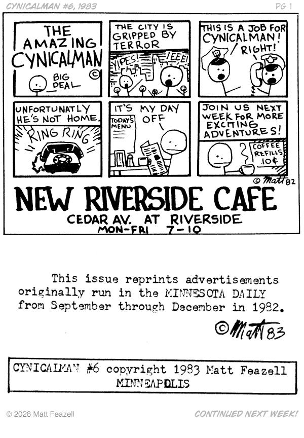 150-page, squarebound collection of the entire Cynicalman Weekly